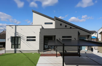 こちらは、施主の「片流れ屋根の外観」と「勾配天井のリビング」というリクエストから、プランニングされていった家です。その上で、外壁をホワイトとグレーの2色で塗り分けるという遊び心も発揮。ご近所の皆さんからもオシャレだと褒められる、ご自慢の家に仕上がったと満足されているそうです。Z空調は想像していた以上に、光熱費の節約ができているとのことです。